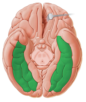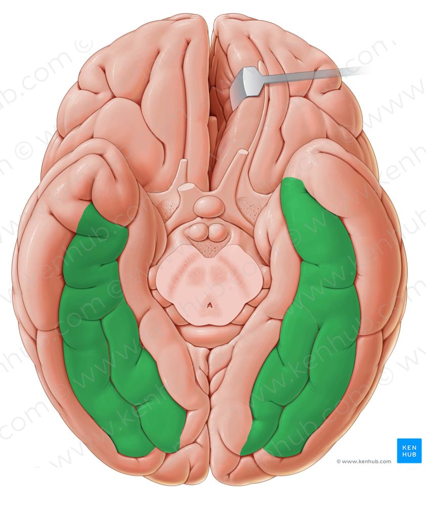 Shown from inferior perspective. Also known as Fusiform gyrus.
