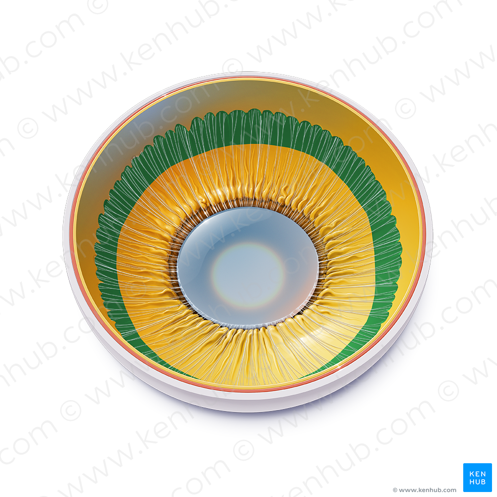 Shown from posterior perspective. Also known as Ciliary ring, Pars plana of ciliary body, and Flat part of ciliary body.