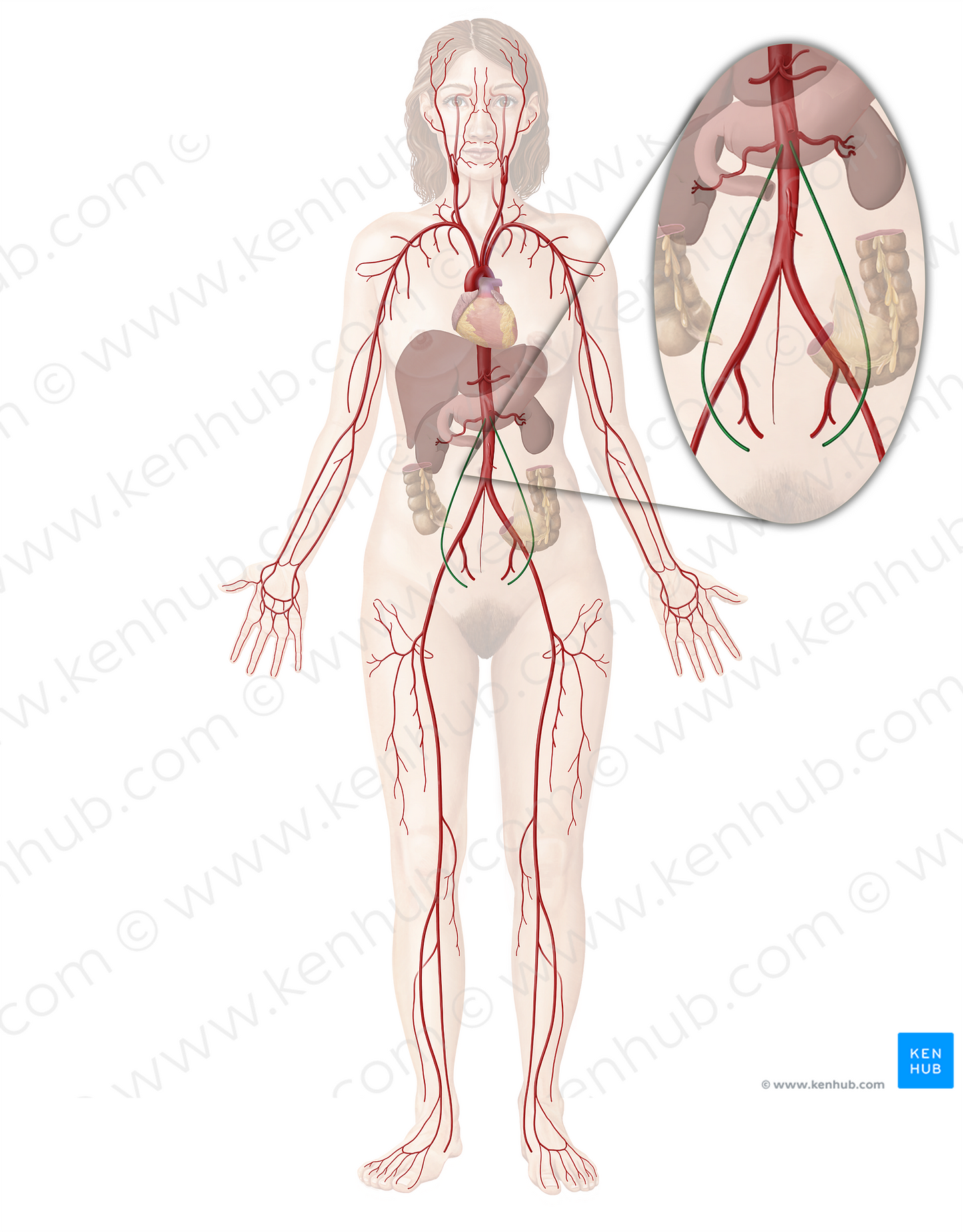 Shown from anterior perspective. Also known as Gonadal artery (female).
