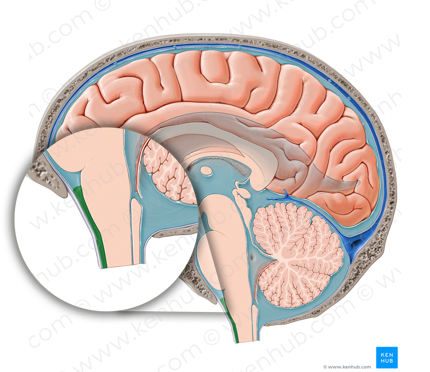 Shown from sagittal perspective. Also known as Spinal subarachnoid cavity.