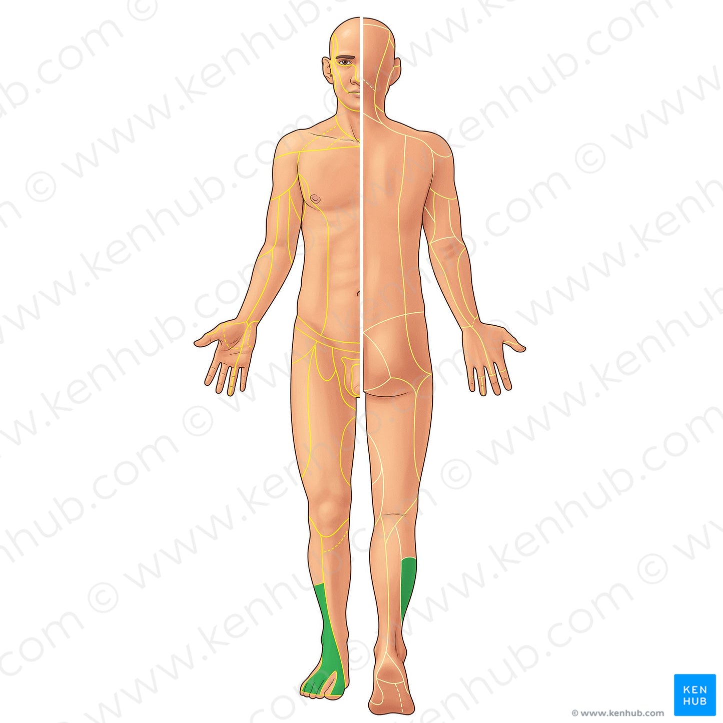 Shown from anterior perspective. Also known as Superficial peroneal nerve.