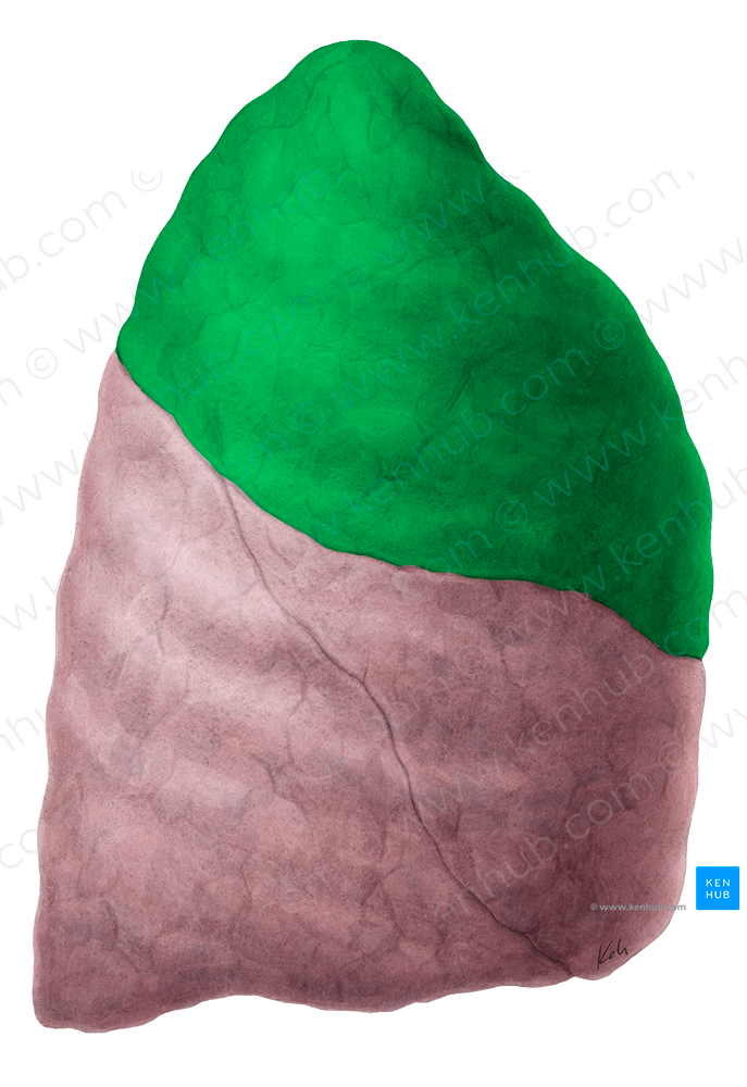 Shown from lateral right perspective. Also known as Upper lobe of right lung.
