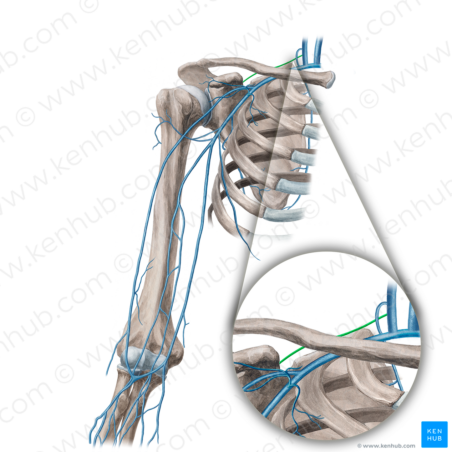 Shown from anterior perspective. Also known as Transverse scapular vein.