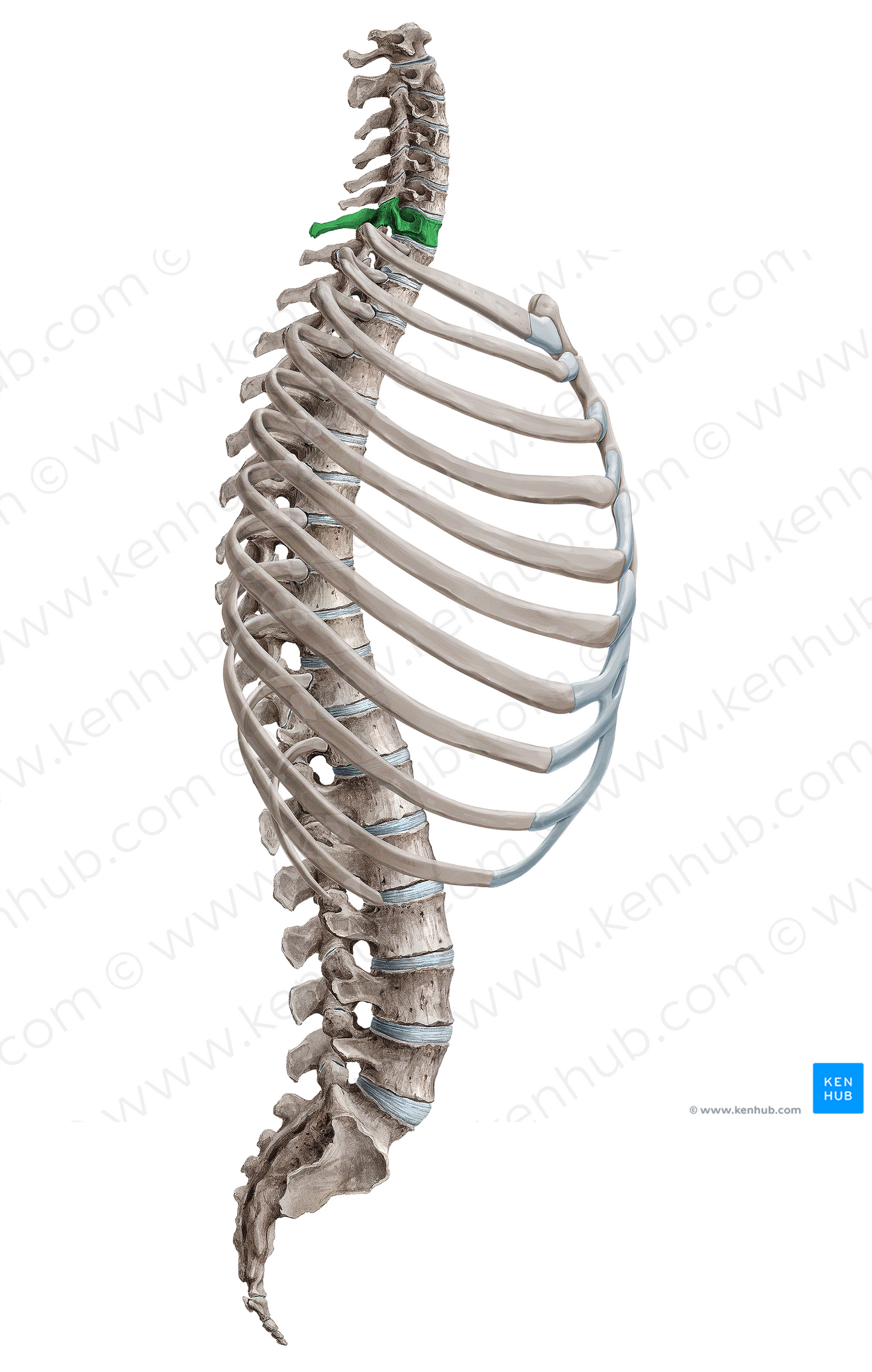 Shown from lateral right perspective. Also known as Vertebra prominens, and 7th cervical vertebra.