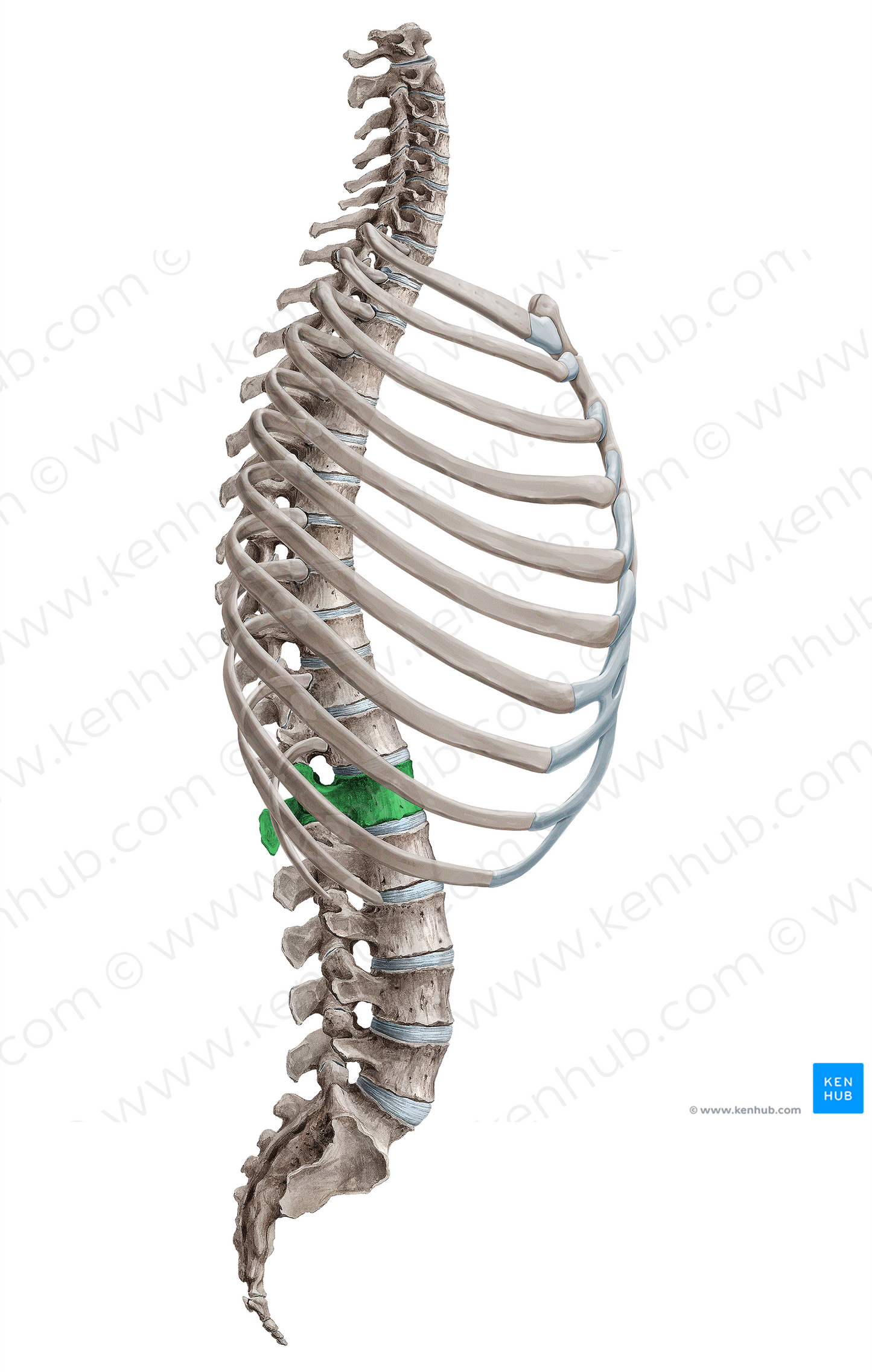 Shown from lateral right perspective. Also known as 1st lumbar vertebra.