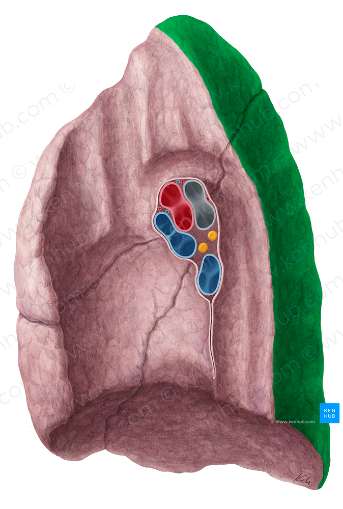 Shown from medial perspective. Also known as Vertebral part of medial surface of lung, and Vertebral part of medial surface of right lung.