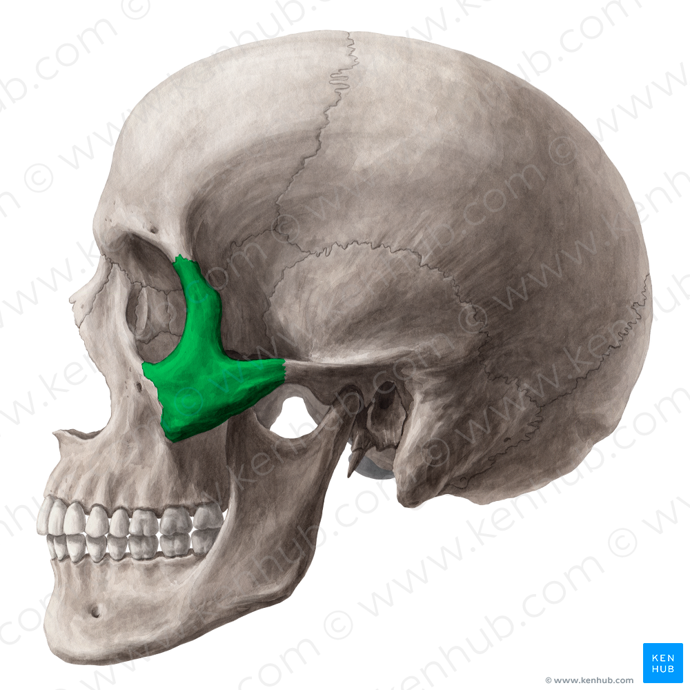 Shown from lateral left perspective. Also known as Zygoma, and Malar bone.